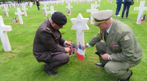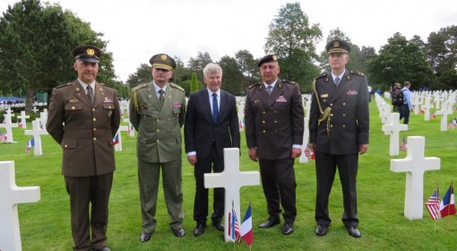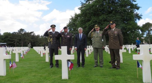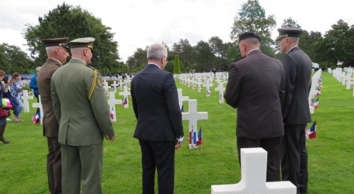 Nakon toga, zajedno s ostalim službenim delegacijama obišla je američko groblje i spomen-obilježje (Normandy American Cemetery) u mjestu Colleville-sur-Mer koje se prostire na površini od 172,5 hektara i na kojem je sahranjeno 9 380 poginulih i 1 557 nestalih američkih vojnika. Hrvatska delegacija položila je cvijeće i hrvatske zastavice na sve za sad identificirane grobove američkih vojnika hrvatskog porijekla, poginulih u iskrcavanju na Normandiju. Točan broj poginulih američkih vojnika hrvatskog porijekla koji je sudjelovao u ovoj savezničkoj ratnoj invaziji na obali Francuske još uvijek nije poznat,iako postoje određeni dokumenti i zapisi Hrvatske bratske zajednice Amerike da je bilo 308 poginulih i 25 nestalih. Sama identifikacija trenutačno se radi na osnovu postojećih zapisa, određenih dostupnih dokumenata Hrvatske bratske zajednice iz Amerike za period 1941.-1945., koja je vodila evidenciju o više od 15 000 unovačenih Hrvata u razne rodove američke vojske, koji su sudjelovali u Drugom svjetskom ratu u Europi i na Pacifiku kao i dostupnih osobnih arhiva, osobnika američkih divizija koje su sudjelovale u iskrcavanju na Normandiju.